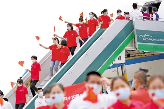羊城晚报记者 张华 通讯员 粤卫信 魏星 游华玲 王雪 林巧文 战时无畏去,春日安然归。4月10日13时,广东省援助湖北武汉应对新冠肺炎疫情医疗队最后一批183人圆满完成援助任务,乘机抵达广州。他们是广东省最后撤离武汉的医疗队。副省长张虎到广州白云国际机场迎接,向全体医疗队员表示衷心感谢和亲切慰问,并致以崇高敬意。 羊城晚报记者了解到,此次返回的队员包括广州市第一人民医院55人、南方医科大学第三附属医院33人、暨南大学附属第一医院(下称“暨大附一院”)65人、广州市妇女儿童医疗中心3人、茂名市中医院4人、茂名市妇幼保健院6人、高州市人民医院10人以及前方指挥部7人。新冠肺炎疫情发生后,广东闻令而动、倾力支援湖北,从1月24日起,广东先后向湖北派出26批次共2493名医疗队员。 广东援汉医疗队 累计收治3616人 据记者了解,该批医疗队为广东省第二十二批医疗队,由广州市第一人民医院副院长余纳任领队,大多数队员于2月21日抵达武汉,是一支整建制全部队员投入重症医学科(ICU)的队伍。在武汉奋战的50天里,医疗队一共支援三家医院,从武汉大学中南医院隔离病房到协和西院区ICU,再到雷神山医院ICU,每一次都出色完成任务,成为支援医院数量最多的医疗队之一。 张虎说,在国家最需要的时候,在湖北武汉人民最需要的时候,同志们踊跃报名、挺身而出,星夜驰援湖北武汉,义无反顾投身到这场举世瞩目、艰苦卓绝的湖北保卫战、武汉保卫战中,同病魔较量,与疫情决战,坚守战斗到最后一刻,涌现出一大批可歌可泣的先进典型和感人事迹。接下来,要继续发扬医者仁心的崇高精神,展现新时代医务工作者良好形象,总结好支援湖北武汉医疗工作的好经验好做法,慎终如始、再接再厉、善作善成,充分休息调整,以更加饱满的身心状态投入到工作中去,为全面夺取疫情防控斗争最终胜利作出新的更大贡献。 省卫生健康委副主任周紫霄在机场欢迎归来队员时表示,希望队员们安心休养,调整好身心状态,接下来,要把支援湖北工作的好经验、好做法运用到广东疫情防控和救治工作中来,以更加饱满的精神、更加昂扬的斗志,为广东打赢疫情防控阻击战贡献力量。 “广东医疗队是第一批驰援,最后一批撤离的医疗队。”广东支援湖北武汉医疗队指挥部总指挥余德文说。医疗队的工作得到中央指导组、国家卫生健康委的高度肯定,得到武汉人民广泛赞誉。 截至4月8日,广东援助湖北武汉医疗队累计收治患者3616人,其中,接管病区累计收治患者1451人,治愈出院981人,转出或交接344人,出院及转出率91.3%;方舱医院累计收治2165人,治愈出院及转出率达100%。对口支援医院累计收治危重症及重症患者1018名,占支援医院病区收治患者总数的70.2%,救治成效明显。 接管中南医院 取得“三零”佳绩 余纳介绍,这支医疗队到达武汉第一天,立即成立医务组、感控组、护理组、病区、宣传组、物资组、信息组和消防安全组等9个小组,明确各自职责。随后,医疗队正式进驻武汉大学中南医院,整建制接管该院4号楼11楼病区。 重症病区仪器设备多,技术要求高,危重症患者多合并基础疾病,病情重,病情变化快,对整个医护团队的要求非常高。为确保病区 24 小时都有熟悉患者病情的医护人员直接管理,还设置了备班,以随时应对病区紧急情况。对患者进行动态心理评估,针对有需要的患者提前心理干预,努力做到既治肺炎也治“心病”。 “面对重症患者应该如何翻身、拍背、吸痰等等,把这些作为每个组的培训清单,要求边上班、边带教、边培训、边整改。”余纳说。 完善的医疗管理制度科学管理以及多学科协同合力最终帮助取得不俗的成绩,接管中南医院两周,医疗队实现了最后的病区清零、病人零死亡、医护零感染的佳绩。 在雷神山攻克 棘手的高难病例 3月12日下午,广东省第二十二批援鄂医疗队全体队员转战雷神山医院ICU。 该医疗队联合管理的病区是重症一区和重症二区,一共28名危重症患者,大部分都是棘手的高难病例:高龄并有基础疾病,其中有十余名患者接呼吸机辅助通气,同时运行几台CRRT(连续肾脏替代疗法)、ECMO(体外膜肺氧合)。 一个夜班三次抢救的经历,让南医三院神经内科副主任医师王晓锋记忆犹新。“有一次夜班,19时30分接班后就忙个不停,刚从中南医院转诊来的83岁患者呼吸循环衰竭,我们马上进行插管上呼吸机,静脉泵注血管活性药物,才让患者稳定下来。”这边刚结束,那边又有一位57岁的病人床旁血气分析就报来危机值。王晓峰介绍,这名57岁患者基础病严重,心功能衰竭、肾功能衰竭、中到重度贫血,此外还不配合治疗。经过讨论和请示上级,医生们最终决定在全麻状态下对患者进行气管插管,呼吸机辅助呼吸,维持血压和血氧的前提下予以透析治疗。经过5位医护人员紧张有序的救治,患者终于转危为安。 回程当日,王晓锋的妻子和女儿也来到迎接他。捧着女儿写的一本日记,王晓锋忍不住眼眶湿润。他告诉记者:“孩子妈妈之前发了两三篇给我,没想到女儿写了那么多篇,她才二年级,好多字都不会写。我会在休整的时候好好看。” 医护心声 暨大附一院神经内科副主任医师孟珩:50天的奋斗,是很漫长和艰苦的。我们甚至来不及去体会悲伤,只想着和死神斗争,抢救多一个患者,再多一个。同时,我们也感受到战友情,面对生死,全力以赴,举国行动,并肩作战