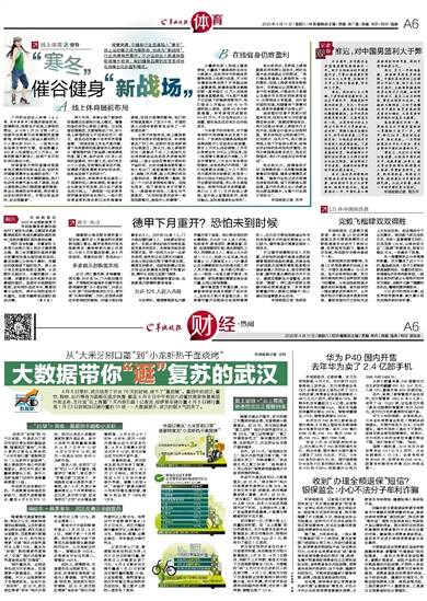 2020年4月11日/星期六/ 体育编辑部主编/责编 吴广崖/ 美编 肖莎/ 校对 温瀚 A6 体育