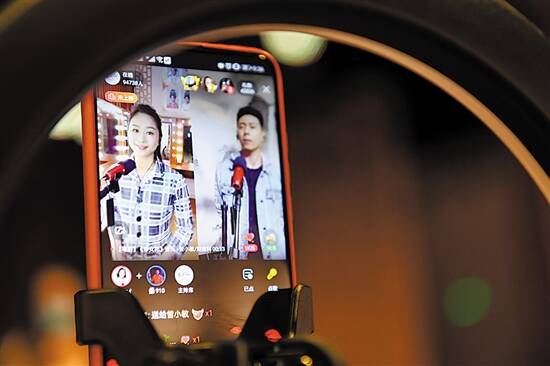 观众通过手机观看粤剧K歌直播(广东粤剧院供图) |