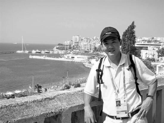 2004年,吴广崖采访雅典奥运会 袁虹衡 摄 |