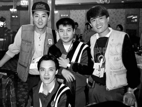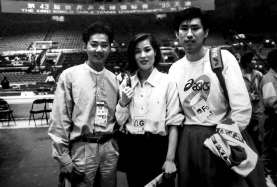 ▲ 1995年,吴广崖(左一)与乒乓球世界冠军王涛(中)合影 郑迅 摄 |
