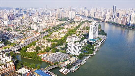 沙面,白天鹅宾馆傍江而立 羊城晚报记者 梁喻 林桂炎 摄 |