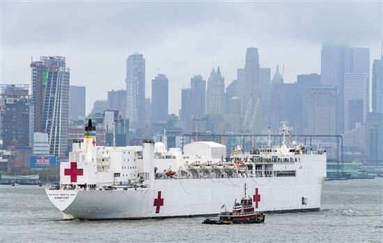 4月30日,美国海军医院船“舒适”号驶离纽约曼哈顿 新华社发 |