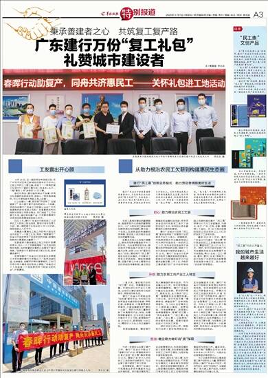 广东建行万份“复工礼包” 礼赞城市建设者