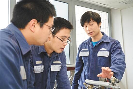 李正强(右一)与团队成员进行项目探讨 刘琳 摄 |