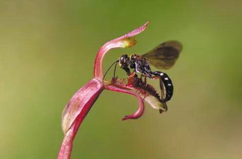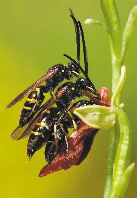 锤子兰会模拟雌性锯蝇的形态以吸引雄性锯蝇 |