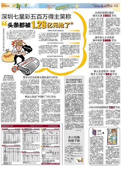 深圳七星彩五百万得主笑称 “头条都被1.28亿元抢了”