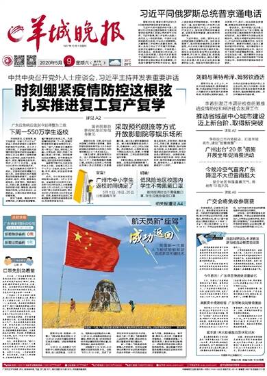 中共中央召开党外人士座谈会,习近平主持并发表重要讲话 时刻绷紧疫情防控这根弦 扎实推进复工复产复学 详见A2 官宣! 广州市中小学生 返校时间确定了 5月11日、18日、25日