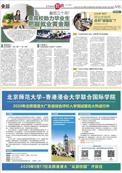 2020年5月15日/ 星期五/ 政文编辑部主编 / 责编 解素蔚/ 美编 蔡红/ 校对 赵丹丹 教育·大学城
