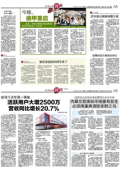体育 2020年5月16日/星期六/ 体育编辑部主编/责编 钟闻一 / 美编 王军 / 校对 温瀚 A6
