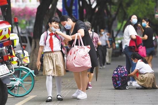 今早,东风东路小学的学生开心返校复课 羊城晚报记者 林桂炎 摄