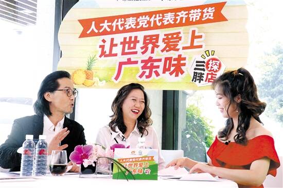 全国人大代表黄细花(中)直播带“广货” 羊城晚报记者 陶奕燃 摄 |