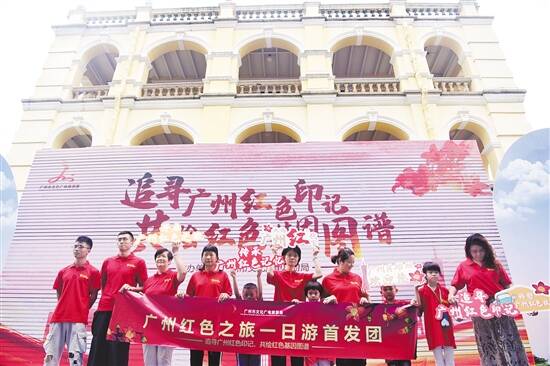 广州红色之旅主题巴士一日游首发团在活动现场启动 羊城晚报记者邓勃 摄 |