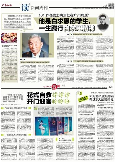 图/受访者供图 他跟随白求恩学习救死扶伤,他在新中国成立后尽心尽力为广东培养医学人才,他在生命的最后时刻毅然决定为祖国的医学事业捐献遗体…… 2019年底,一名百岁老人在女儿的陪同下,来到广州军区总医院的白求恩塑像前,喃喃道:“白求恩老师,您知不知道,80年以后,还有一个学生来看您啊!” 几个月后,2020年5月10日凌晨1时20分,这名百岁老战士、中国共产党党员、原中山医学院副院长姚崇仁因病在广州逝世,享年101岁。 抗日战争中,姚崇仁曾随国际共产主义战士诺尔曼·白求恩学习、战斗,白求恩“毫不利己专门利人”的精神影响了他的一生。战争时期,他在枪林弹雨中一次次掩护、抢救伤病员的性命;新中国成立后,他为广东培养医学人才倾注心力;在生命的最后时刻,他做出捐献遗体的决定,不开追悼会,一切从简。 5月16日,姚崇仁的女儿姚迎明在广州接受了羊城晚报记者的专访,回忆父亲的传奇一生。 壹 摸黑冲过重重封锁线 19岁青年奔赴延安 1919年9月21日,姚崇仁出生在山西垣曲一个革命家庭。四叔姚理平是一名老红军、老党员。在四叔的影响下,初中生姚崇仁就开始参加进步学生组织。他参加了“一二·九”学生运动,和进步学生一起传阅进步书籍、抵制日货、卧轨请愿,和同学们一起踏着过膝深的大雪,到矿山、到工厂宣传抗日思想…… “父亲常常说,四叔是他参加革命道路上的一个引路人,是四叔跟他说:‘你一定要来延安参加革命,那里是非常锻炼年轻人的地方!’”姚迎明回忆说。 就这样,1938年9月,19岁的姚崇仁在一个深夜,和一名同学一起偷偷离开了家。他们白天藏麦地,晚上偷过封锁线,躲过了炮弹扫射,走了两天多,终于到了延安。 2011年写的《难忘的延安岁月》一文中,姚崇仁讲述了他在延安的故事。 到了延安后,姚崇仁在一个小屋里宣誓,成为一名共产党员。他被分配到陕北蟠龙镇抗大七大队,后得以进入延安抗日军政大学二分校继续学习。一年后,姚崇仁进入晋察冀军区卫生学校(即白求恩学校)学习,从此在卫生战线战斗了一辈子。 贰 跟随白求恩学习医术 战场上无惧救死扶伤 在白求恩学校,姚崇仁遇到了他人生道路的第二位领路人——国际共产主义战士诺尔曼·白求恩。 “在那里,我亲耳聆听了白求恩大夫的教诲,目睹了白求恩救死扶伤的感人场面。”姚崇仁在回忆文章中写道。 姚迎明回忆,父亲常说起白求恩给他们上的第一节课。“当时我父亲作为学生班长,给白求恩递了一杯水。白求恩在课上说:‘希望你们在座的战士,将来上到战场上,在救死扶伤的工作中,你们一定要对待伤病员像对待自己的衣食父母一样关心、爱护他们。’” 这句话不仅影响了姚崇仁的一生,也深深影响了女儿姚迎明,在父亲的感染下,她也走上从医之路。 从白求恩学校毕业后,姚崇仁被分配到后方医院,到晋察冀军区冀中九分区当军医。“当时缺医少药,他们白天给伤病员清创、换药,晚上就挑着一筐筐脓血绷带到河边清洗,洗完了再重复用。敌机来了就趴下,很多战友就这样牺牲了。”姚迎明说。 1942年,日本侵略者对冀中抗日根据地开展了惨烈的“五一”大扫荡,实施残暴的“三光”政策。 姚迎明说,父亲为了掩护伤病员,把几百名伤病员分散到老百姓家里。白天敌机狂轰滥炸,晚上才能到各家给伤病员打针、换药。敌人一来扫荡,他们就把伤员通过老百姓家的炉灶转移到地道里医治。“他用白求恩精神鼓励医生护士,为伤病员服务,让他们早日重返前线。” 姚崇仁还带着医护人员转战密林开展地道战,练就了一双“飞毛腿”,也因此荣获冀中五一反扫荡奖章。 2009年,姚迎明带着90岁高龄的老父亲一起重走了冉庄地道战遗址、白洋淀、西柏坡等地。老人仍记得解放信安里、唐二里、沙河桥,大清河北战役、解放张家口战役、绥远战斗等战役的惨烈。 在冉庄地道战遗址,姚崇仁带着姚迎明在地道里走了整整2000米。“他说,那是他战斗过的地方。为了躲避鬼子的扫荡,他把名字都改成了‘姚仁’。在那里,他救了很多伤病员!”姚迎明说。 在华北军区烈士陵园,姚崇仁祭拜了恩师白求恩后,这位90多岁的老人坐在当年一起战斗的老班长墓前,久久不愿起来。他说:“我们活着太幸福了,没有他们,我们哪能活到现在呢?” 2015年姚崇仁获颁“中国人民抗日战争胜利70周年”纪念章,2019年再获颁“庆祝中华人民共和国成立70周年”纪念章。 而在老人的遗物中,还有一枚被仔细保存了半个多世纪的“华北解放纪念章”。 叁 一生践行白求恩精神,遗体捐献给医学事业 1948年解放前夕,一场战役后,姚迎明出生了。姚崇仁给女儿取名姚迎明,意为“迎接光明”。 新中国成立后,组织安排姚崇仁到广州工作,先后担任中山医学院第二附属医院副院长、中山医学院党委办公室主任兼总务处处长、中山医学院第一附属医院革命委员会副主任,以及中山医学院党委委员、副院长等职,1984年5月离休。 “他在中山医学院工作生活了半个多世纪,对中山医很有感情。”姚迎明说,退休后,父亲在军训大会等场合,总是向新生们宣传白求恩精神。他还常常来到病房,教育年轻医生们当个好医生,救死扶伤。晚年,他还积极参加抗大合唱团,到少管所等地讲革命故事,教育后代不忘历史。 姚崇仁生前工作的中山大学同事们也都说,姚老长期工作在医学和医学教育战线,传承弘扬白求恩精神,为卫生