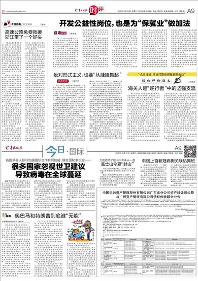 2020年5月19日/星期二/ 要闻部主编/责编 杨清华 钱克锦 / 美编 李焕菲 / 校对 温瀚