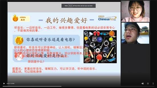中文教师在线上授课 |