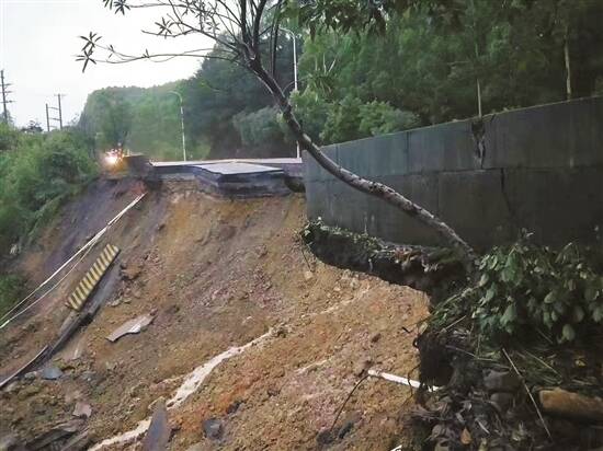 羊城晚报讯 记者张文,通讯员何晓红、林杰摄影报道:受强对流云团影响,8日下午开始,韶关市曲江、翁源、乳源、新丰以及韶关城区多地出现持续强降雨,气象部门陆续发布暴雨红色预警,教育部门和气象部门联合发布停课通知。数据显示,8日17时至9日5时,韶关市曲江区樟市镇南约村录得12小时降雨量高达294.7毫米,达到特大暴雨量级。 记者获悉,受强降雨影响,国道G106线韶关市翁源县狮子山段(K2268+912m至962m)右幅路基淘空并下塌(见上图),9日早上6时10分道路交通中断,通车时间暂时无法预计,来往车辆可绕行京港澳高速公路。 同样受强降雨影响,9日上午6时许,韶关市乳源瑶族自治县洛阳镇白竹电站边坡出现塌方,造成电站压力管破损,国道G323线(K430+200m)道路被冲毁,1名电站工作人员受轻微伤,无发生交通事故,目前道路正在紧张抢修中,过往车辆需绕行。
