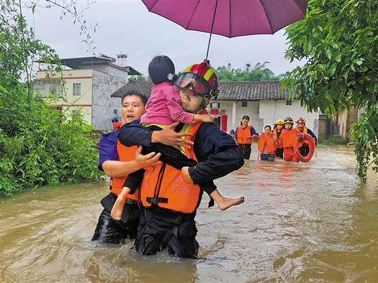 羊城晚报记者 付怡 通讯员 粤应宣 粤消宣 蔡紫容 “龙舟水”持续影响广东,8日,广东强降雨持续,珠江三角洲、粤北和汕尾、揭阳出现了暴雨到大暴雨,局部出现特大暴雨。各地积极组织危险区域人员转移。记者从广东省应急管理厅获悉,截至6月8日22时,全省累计转移20096人,其中:清远转移7063人、肇庆转移1109人、惠州转移3565人、河源转移4699人、广州转移3153人、深圳(深汕合作区)转移安置110人、韶关转移57人、梅州转移340人。 多名群众被困家中 消防用橡皮艇救援 受持续性暴雨影响,6月8日上午11时左右,河源市临江镇联新村内涝严重,房屋浸水多人被困,急需救援。江东新区消防大队接到报警后,立即出动3辆消防车18名消防指战员赶赴现场开展救援。 消防员到达现场发现,消防车已经无法到达村庄,道路路面积水最深处已达1.2米,水流湍急,村庄道路和农田被水淹没,成为一片汪洋。由于道路情况复杂,暗涌和下水道口情况不明,一组消防员架设救生引导绳,在前摸索开道,避免撤离过程中踩空摔倒;另一组消防员携带救生衣、安全绳、安全腰带等器材涉水前往搜索被困人员。 靠近被淹房屋后,消防员发现有4处低洼点,35名群众被困,其中包括4名行动不便的老人、1名孕妇、5名小孩,消防员帮老人穿戴好救生衣后,将老人安置在担架上面,往外转移。消防员反复来回1000多米,利用橡皮艇运输、人工背运等方式在一米多深的河水中连续战斗3个多小时,直至将最后一名被困群众救至安全地带。 为确保不漏村民一人,消防员轮流值守深入到每一户村民家中进行排查。截至发稿,河源江东新区消防大队共转移出35名被困群众。 广州出现山体滑坡 消防徒手刨挖救援 6月7日19时51分许,广州市119接到报警:位于广州市花都区梯面镇联丰村桂花园林上庄停车场处发生泥石流地质坍塌灾害,一栋村民房被泥石流压塌,3名群众被埋。55名消防指战员、9台抢险救援车立刻赶赴现场实施救援。 20时10分,消防到达现场,坍塌房屋内一名妇女下半身被墙体与泥土埋压,只剩下胸部以上位置露出在外,意识比较清醒。消防员立即徒手刨开泥土,同时另外几名消防员合力将接近300斤墙体抬起移开。移开墙体后,消防员发现该妇女怀中还抱着一个小女孩,小女孩头部流血受伤,处于昏迷状态,妇女着急大喊:“快救救我的孩子!” 消防员一边安抚该妇女,一边根据现场情况优先对小女孩进行救援。20时58分许,消防员把小女孩抱出,移交现场120医护人员进行抢救。21时03分,指战员合力徒手刨开泥土救出该名被埋妇女,21时06分,在相近位置救出另一名妇女,均移交120医护人员救治。记者后续从花都区应急管理局了解到,小女孩由于伤势过重,送医后抢救无效不幸去世。
