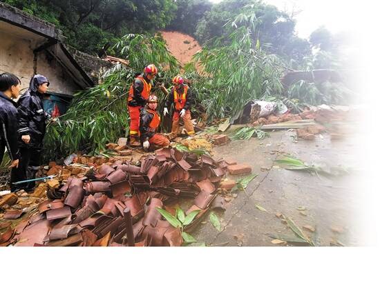 韶关市曲江区发生山体滑坡,救援人员清理道路 韶关消防 供图 |