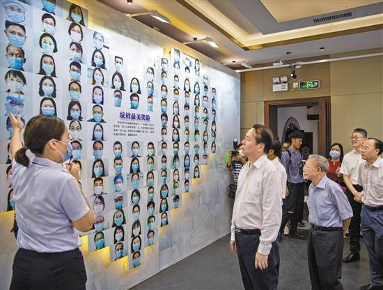 时间轴展示广药人战疫历程 羊城晚报记者 宋金峪 摄 |