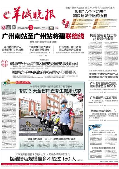 1957年10月1日创刊 2020年7月3日 星期五 庚子年 五月十三 责编/冷爽 苏碧青 美编/肖莎 校对/温瀚 报料热线:(020)114