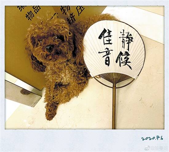 潘粤明为考生晒出扇面书法“静候佳音” |