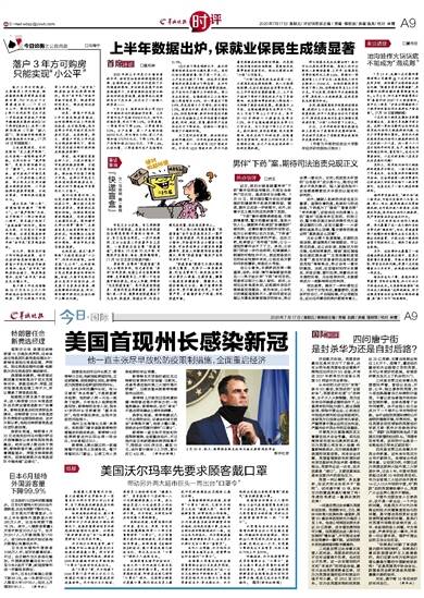 今日·国际 2020年7月17日/星期五/ 要闻部主编/责编 赵鹏 / 美编 湛晓茸 / 校对 林霄