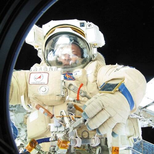 进行舱外活动的俄罗斯宇航员袖子上佩戴着小镜子(资料图片) |