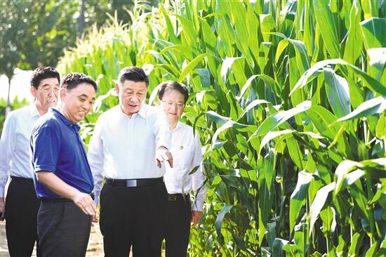 22日下午,在四平市梨树县国家百万亩绿色食品原料(玉米)标准化生产基地核心示范区地块,习近平走进玉米地,了解农业科技研发利用、黑土地保护情况 新华社发 |