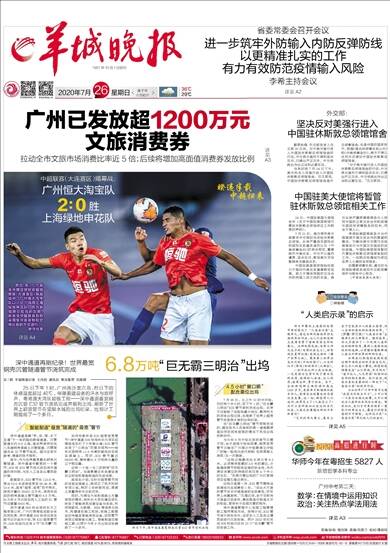 1957年10月1日创刊 2020年7月星期日 庚子年六月初六 责编/孙焰 钱克锦 美编/范英兰 校对/潘丽玲 报料热线:(020)114转羊城晚报