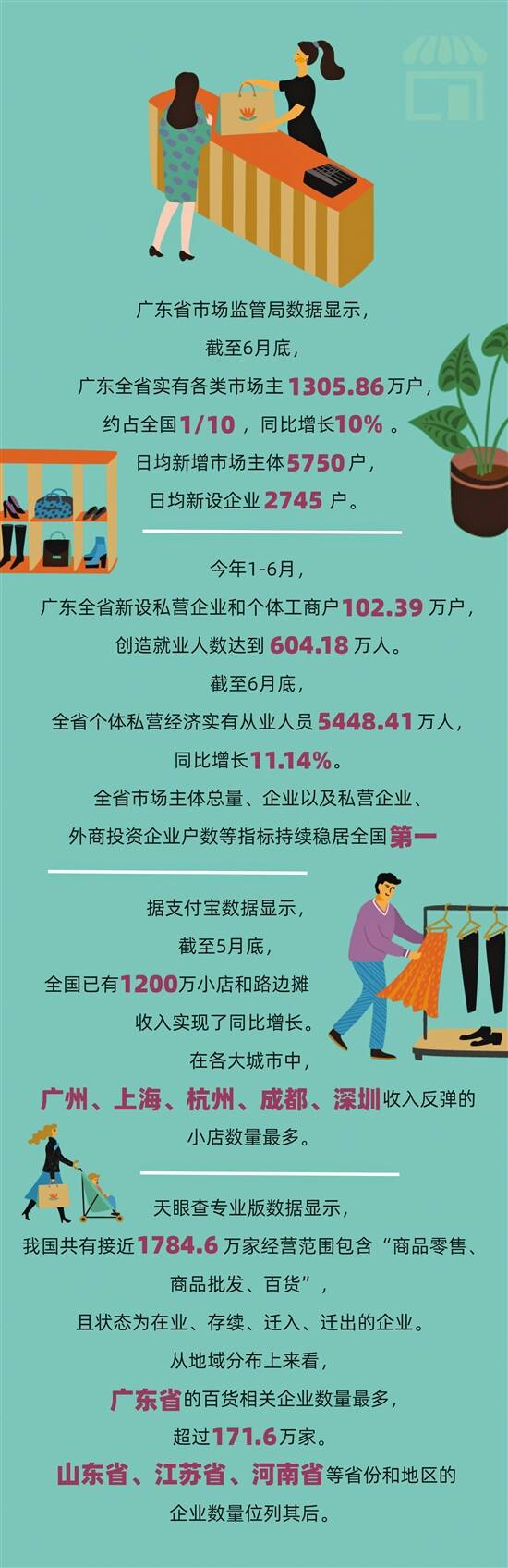 羊城晚报记者 莫谨榕 实习生 孔乐怡 小店经济火了。 “到2025年,培育小店经济试点城市(区)100个,赋能服务企业100家,形成人气旺、‘烟火气’浓的小店集聚区1000个,达到‘百城千区亿店’目标。”近日,商务部等七部门联合印发《关于开展小店经济推进行动的通知》,小店经济发展迎来新机遇。 从独具特色的老字号到迅速走俏的网红店,从深入社区的早餐店到小本经营的夫妻档,这些像毛细血管一样的经济单元看上去微不足道,却关系着数以亿万计城乡居民的生存大计。当前,小店经济成为稳就业、保民生的重要抓手,这些“毛细血管”对于畅通国内经济大循环,激活内需动力尤为重要。 在广东,多地通过发放电子消费券、加大力度减税降费等方式促进小店经济回暖,也有一批小店通过产品创新、积极转型等方式实现业绩“翻红”,这不仅体现了广东小微企业的韧性,更是为广东经济活力复苏写下生动注脚。 生意回暖 经济“毛细血管”正慢慢修复 在广州市番禺区内4A级景区沙湾古镇内,古色古香的小路两旁是各种各样的特色小店,其中“沙湾奶牛皇后”甜品店在当地家喻户晓,前来尝鲜的游客络绎不绝。 甜品店的创始人甜姐,数十年如一日地经营着这份“甜蜜”事业。“我们3月2日恢复营业,目前营业额已达疫情前的六七成,生意在逐步回暖。”甜姐高兴地对羊城晚报记者说。 如今在广东的许多街区商圈,经济回暖的生机和活力日益显现,“毛细血管”正在慢慢修复。近期一系列经济数据也印证了这一点:广东省市场监管局数据显示,截至6月底,广东全省实有各类市场主体1305.86万户,约占全国1/10,同比增长10%。日均新增市场主体5750户,日均新设企业2745户。 今年1-6月,广东全省新设私营企业和个体工商户102.39万户,创造就业人数达604.18万人。截至6月底,全省个体私营经济实有从业人员5448.41万人,同比增长11.14%。全省市场主体总量、企业以及私营企业、外商投资企业户数等指标持续稳居全国第一。 放眼全国,数以千万计的小店在复苏中。支付宝数据显示,截至5月底,全国已有1200万家小店和路边摊收入同比增长。在各大城市中,广州、上海、杭州、成都、深圳收入反弹的小店数量最多。 提到小店经济,就不得不提为小店经济持续供能输血的百货相关企业。天眼查专业版数据显示,中国共有接近1784.6万家经营范围包含“商品零售、商品批发、百货”,且状态为在业、存续、迁入、迁出的企业(以下简称“百货相关企业”)。从地域分布上来看,广东省的百货相关企业数量最多,超过171.6万家。山东、江苏、河南等省份位列其后。这些企业的存在,为小店的发展创造丰沃的土壤。 触网、触播、内销 小店积极转型自救 小店以个体工商户和微型企业为主,抗风险能力较弱。受疫情影响,不少小店一度备受打击。令人欣慰的是,在困难面前,不少小店求新求变,找到了生存发展的突破口,最终实现了小店经济“翻红”。 “今年受疫情影响,景区1月24日就开始关闭了。春节期间小店基本停摆,但租金、员工工资、社保费都是固定费用。3月2日恢复营业,开始游客也不多,仍是亏损。”甜姐告诉记者,面对疫情带来的困难,甜品店在当地政府的帮助下接触了电商平台。“电商平台免费给我们带货直销,还和一些旅游公司、网络公司合作,现在电商平台收入占我们总收入的一两成,向互联网转型让我们更好克服疫情带来的困难。” 通过积极“触网”“触播”,调整商业模式等方式实现生意回暖的小店并不只有“沙湾奶牛皇后”甜品店。晋业珠宝有限公司在广州番禺从事珠宝制造与加工业务已有10年。疫情期间,由于订单减少、员工不能返岗、供应商无法复工等问题,销售下滑,出口额萎缩了六七成。 “我们以前主要来料加工和出口订单,疫情让订单缩水不少,为了度过困难,我们一方面做好出口转内销,开拓新客源;另一方面加大设计研发,还积极进行电商直播。”晋业珠宝财务经理龚雾霖表示,经过积极调整,公司的销售在6月突破了今年的首个千万元大关,恢复到去年同期的八九成,比5月增长1.19倍,7月营业收入与往年基本持平,出现了良好的增长势头。“我们对下半年充满信心。”龚雾霖表示。 政府、企业、平台齐出手多方帮扶小店回暖 受疫情冲击,尽管不少小店经营已开始回暖,但困难仍不少。小店经济“翻红”,既得益于小店经营者、劳动者求变自救,也得益于政府、金融企业、互联网平台等的大力帮扶。 保护好包括小店在内的中小微市场主体,是重要的经济任务之一。呵护小店经济,还需多方努力。一方面,各大互联网平台正积极为小店求新求变提供工具。支付宝发布的数据显示,最近三个月,在消费券、免息券、外卖等三大数字工具的共同作用下,小店收入显著高出平均水平的两倍,消费券、免息券、外卖已成拉动小店经济的“三驾马车”。 另一方面,政府在减税降费、金融帮扶等方面重点施策,帮助解决在资金、经营等方面的问题,让小店更有烟火气、更有生命力。 火遍朋友圈的“蘑菇头”表情包来自广州一家文创创业企业蚊子动漫科技有限公司。作为小微企业,蚊子动漫的创业之路并不容易。“蚊子动漫盈利方式主要是IP授权、品牌合作、内容付费、周边销售等,盈利最多的是在合作授权的事宜上。”创始人吴武泽表示,这块也是最头痛的部分。“这几年二次创作开始泛滥,