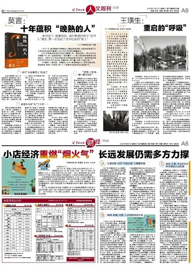 文/羊城晚报记者 孙磊 7月31日,莫言携新作《晚熟的人》重返读者视野,这是他获得诺贝尔文学奖后的首部长篇著作,由人民文学出版社隆重推出。 2020年距莫言获诺奖已经过去整整八