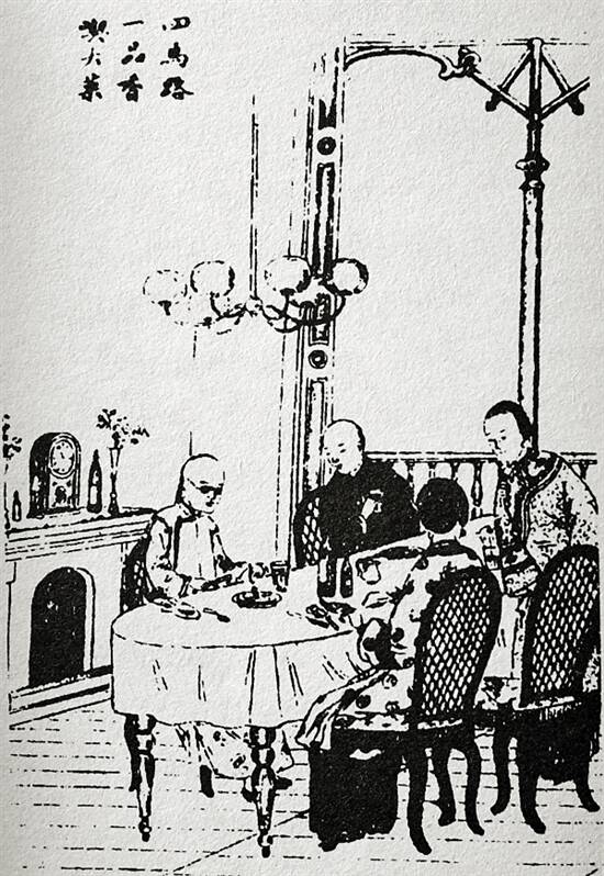 石版画《海上快乐图:四马路一品香吃大菜》 |
