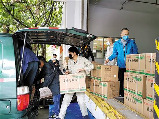 员工自愿回公司,参与首批夏桑菊捐赠物资的发货 |