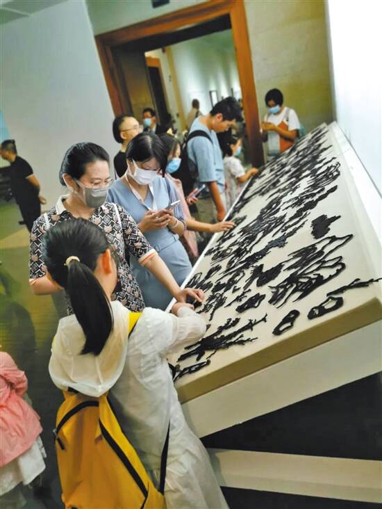 观众在李邦耀的作品《山水谱》(装置)前互动 |