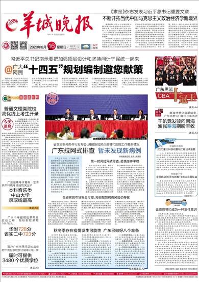 1957年10月1日创刊 2020年8月16日 星期日 庚子年六月廿七 责编/苏碧青 赵鹏 美编/肖莎 校对/潘丽玲 报料热线:(020)114转羊城晚报报料、(0