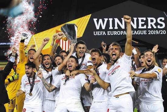 塞维利亚队球员在夺冠后庆祝 新华社发 |