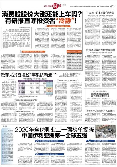 2020年全球乳业二十强榜单揭晓 中国伊利亚洲第一全球五强