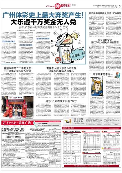文/羊城晚报记者 吴珊 插图 采采 广州体彩史上最大弃奖诞生!等了103天,广州体彩大乐透1000万头奖最终无人认领。截至8月31日24时,大乐透第20039期落在广州市荔湾区的1000万元头奖最终无人认领。 三次寻人无果 5月20日,体彩大乐透第20039期开奖,前区开出号码“01、05、15、22、31”,后区开出号码“02、09”。当期全国共中出2注一等奖,均为奖金1000万元的基本投注一等奖,其中一注落在广东广州,出自荔湾区黄沙大道175号4401001517体彩实体店,中奖彩票为一张6元3注单式票。 今年因为疫情原因,大乐透第20039期兑奖截止日期延长到了8月31日,总的兑奖有效期长达103天,远远超出正常情况下的60天。 令人遗憾的是,截至8月31日24时,始终没有人持上述中奖彩票前往广州市体彩中心兑奖。于是,广州体育彩票史上金额最高的弃奖诞生! 针对该大奖得主迟迟未现身,广州体彩曾先后3次发出“寻人公告”寻找该中奖者,但最终都未能如愿。于是103天后,广州这注1000万元大奖正式成为弃奖。 弃奖奖金会去哪儿? 被弃的1000万元大奖奖金怎么办?根据《彩票管理条例实施细则》第五十七条规定,逾期未兑奖的奖金纳入彩票公益金,由彩票销售机构结算归集后上缴省级财政,全部留归地方使用。 值得一提的是,广州这注1000万元弃奖并非孤例。今年7月公布的《广东省2019年度省级体育彩票销售及省级公益金使用情况公告》显示,2019年度广东省逾期未兑奖额高达8742.01万元。同期公布的《广州市2019年度体育彩票销售及公益金筹集、使用情况的公告》也显示,广州市2019年逾期未兑奖奖金筹集公益金为910.39万元。 去年也有大奖被弃 巧合的是,2019年由深圳购彩者弃领的1000万元大乐透头奖,也同样是在“5月20日”这样一个具有浪漫色彩的日子中出。 2019年5月20日,体彩大乐透第19057期开奖,深圳一名购彩者命中头奖1000万元,兑奖截止日为2019年7月19日。最终,该中奖者未能现身领奖,1000万元大奖也成为深圳体彩史同时也是当时广东体彩史上的最大弃奖。 这个大奖出自于宝安区石岩街道石环路12号A-20铺的4402038113体彩网点。大奖被弃领前,深圳体彩甚至在报纸头版刊登整版广告,全城寻找这位还没有领奖的幸运儿,但依旧没能阻止1000万元被弃。