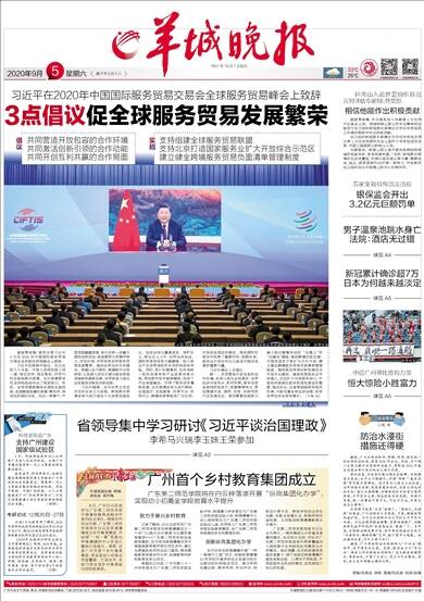1957年10月1日创刊 2020年9月5日 星期六 庚子年七月十八 33℃ 26℃ 责编/陆德洁 孙焰 美编/伍岩龙 校对/温瀚 报料热线:(020)114转羊城晚报