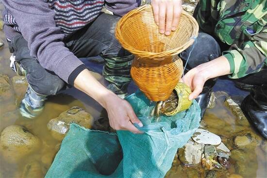 将捕获的琴鱼倒入篓中 |