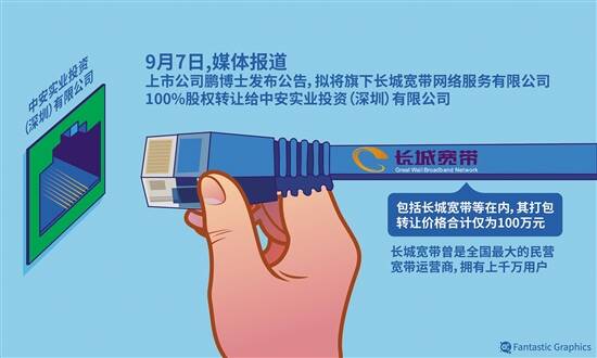 羊城晚报记者 林曦 实习生 何青欣 你还记得长城宽带吗?你还在用长城宽带吗?曾经是最大的民营宽带运营商,如今100万元就要卖掉了。 近日,上市公司鹏博士(600804)公布了《关于子公司股权转让的公告》,称公司拟转让全资子公司长城宽带网络服务有限公司、河南省聚信网络信息服务有限公司、沈阳鹏博士网络服务有限公司、浙江鹏博士网络服务有限公司的100%股权,转让价格合计100万元。 羊城晚报记者查询资料了解到,2012年12月,鹏博士与中信网络有限公司就长城宽带50%股权转让事宜签订了《产权交易合同》,产权转让价款7.12亿元,按照该支付价格,长城宽带彼时估值14.24亿元,如今100万元低价转让不禁令人唏嘘。 长城宽带近年亏损严重 出售4家公司只要100万元?该公告一出即引发关注,上交所也迅速下发问询函,要求鹏博士补充说明标的资产近年来主要经营及财务状况以及亏损原因;标的资产的作价依据,论证仅参考净资产账面值进行定价的充分性、合理性和公允性,是否损害上市公司利益等。 对于此次出售子公司的原因,鹏博士在公告中解释为,近年来,随着互联网接入市场的竞争逐年加剧,行业ARPU值(每用户平均收入)持续下滑。面对不断加剧的市场竞争,家庭宽带业务中可获取的利润空间逐渐缩小,本次交易将有效降低亏损业务对公司业绩和长期发展的影响,有利于优化公司资源配置。 公开数据显示,长城宽带曾是全国最大的民营宽带运营商,拥有上千万用户。不过,近年来长城宽带净利润不断下滑:2015年净利润为3.24亿元;2016年净利润为2.84亿元,同比下滑12.31%;2017年净利润为1.6亿元,同比下滑43.43%;2018年,长城宽带净亏损达1.86亿元,到了2019年亏损更是超过了26亿元。 从2015年起,政策层面不断强调提速降费,牌照的放开导致增值电信业企业迅速增加。随着三大运营商中国移动、中国电信、中国联通不断进行提速降价,光纤改造,以及推出各种宽带融合套餐,主打低价策略的长城宽带很快就失去了优势,走向了亏损。随后,长城宽带表示:“不再投资新增城市,而是在已有212个覆盖城市的基础上服务好现有用户,同时承接运营商固网宽带的营销和装维服务。”并且,鹏博士与北京联通签署协议,将长城宽带客户规划给联通公司,但即便开展自救,还是难以挽回颓势。 天眼查资料显示,作为全国最大的民营宽带运营商,长城宽带曾有过高速发展的辉煌期。长城宽带注册资本9亿元,成立于2000年4月,主营业务为互联网接入业务。但是,截至今年6月30日,长城宽带资产总额39.6亿元,负债总额38.3亿元;今年上半年营收8亿元,亏损5715万元。 今年年中,长城宽带的母公司鹏博士公布了2019年年报,净利润巨亏57.51亿元。亏损的主要原因是大额资产减值,商誉减值19.99亿元,固定资产减值30.75亿元。 公司服务质量频遭吐槽 广州的鹿先生是长城宽带长达10年的老用户,他对羊城晚报记者表示,最近两三年的时间,长城宽带的网速很慢,经常打不开网页、看不了视频,甚至会遇到频繁断网的时候,而且客服电话非常难接入,接线员对业务很不熟悉,常常像自动答录机一样念念章程,却不解决问题。 其实,鹿先生遇到的问题也是广大长城宽带用户经常吐槽的“通病”。今年3月, “长城宽带出现断网引发了网友的吐槽”的事件还上了微博热搜。事件先是从东北三省的长城宽带断网开始发酵,很多网友在微博上表示:“自家断网了,网课没法上,视频也看不了。”当时,鹏博士集团相关负责人表示,公司第一时间派出技术维修团队进行问题排查,发现分别是光缆被烧断和施工问题,而不久深圳、天津、青岛等多地网友也反映遭遇了同样的问题。 对于多地网友的声讨,鹏博士集团相关负责人称,主要是疫情期间受到线上娱乐、线上办公及线上教育的影响,宽带流量的需求短期激增,在使用高峰期会出现网速慢甚至断网问题。 进一步引起事件发酵的是,断网事件发生后,网友们致电长城宽带客服投诉,但“打不通”“不接电话”“无法接通”。不少网友对于长城宽带客服电话无法接通的情况感到不满。对此,长城宽带方面回复称,此前电话接通困难,不排除是问询电话集中,造成线路忙碌,无法及时接通。 反观三大运营商,它们的宽带用户增长量都表现不错。根据中国联通上半年财报,其宽带用户8588万,净增240万。同样根据上半年公布的中期业绩,中国电信宽带用户净增101万户。而作为后起之秀的中国移动上半年家庭宽带用户净增895万户,达到1.81亿户。 “三大运营商都在主打千兆光纤,智慧家庭,并推出5G加光纤家庭融合套餐,产品上价格上都具备优势。此外大量新建楼盘都配备了三大运营商的网络,这种情况下长城宽带的路子只能越走越窄。”第一手机界研究院院长孙燕彪表示。 易主之后原有主业不变 现在,长城宽带要被卖掉了。但是还有不少用户是长城宽带的用户,这些消费者会受到影响吗? 对于此次收购长城宽带,中安实业表示,此次收购长城宽带是中安布局的一部分,主要还是看好家庭端商业场景创新发展机会,借助长城宽带家庭端具备的平台+服务能力,超万人的营维队伍及丰富的运营经验等长城宽带自有优势,为加强中安自身相关业务推进所作出的必然选择。 据介绍,此次转让完成双方融合后,中安实业将充分利用长城宽带地推人员的组织优势,加快商业场景创新解决方案的落实实施,加速研-产-销进程,进而推进家