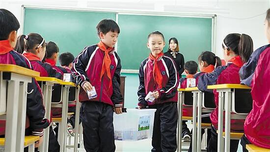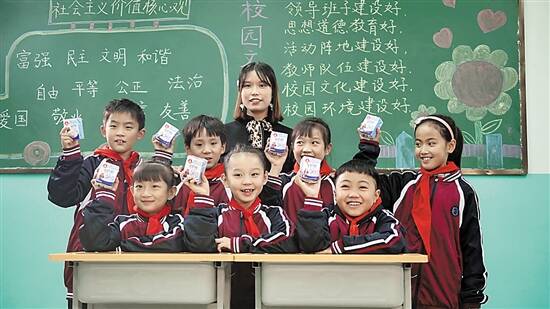 学生们喝上带有“中国学生饮用奶”标志的学生奶 |