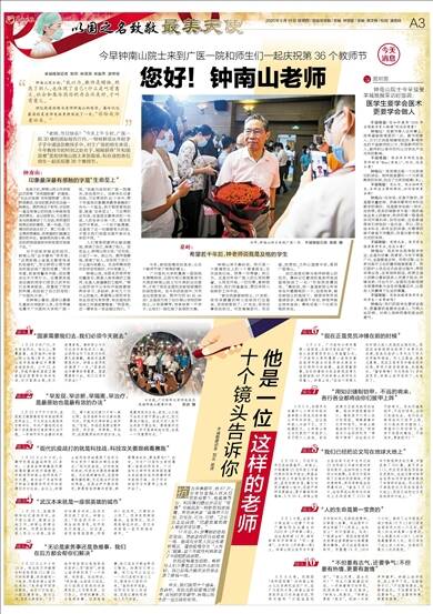 羊城晚报记者 刘云 林清清 徐振天 梁怿韬 钟南山院士说:“我以为,教师是蜡烛,照亮了别人,也体现了自己!什么是叫有意义,社会和集体因你的存在而美好,才叫有意义。” 回忆战疫初期与老