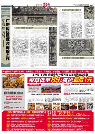 撰文/黄利平 摄影/施用和 珍贵异常的清代砖雕原作 建成于1894年的广州陈家祠(又名陈氏书院)是现存规模最大的广府传统建筑之一,它集中了广府建筑装饰艺术大成