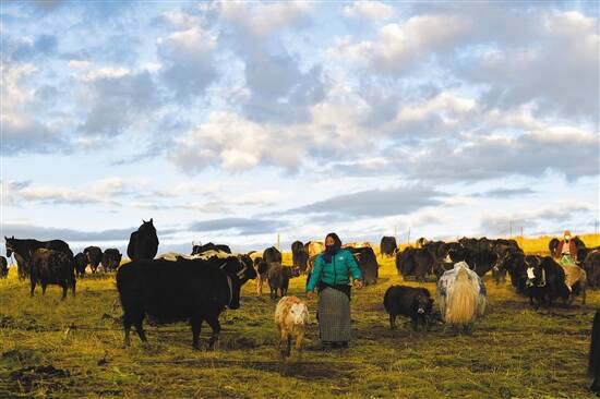 青海省黄南藏族自治州河曲草原,当地牧民正在拴牛准备挤奶 新华社记者 张龙 摄 |