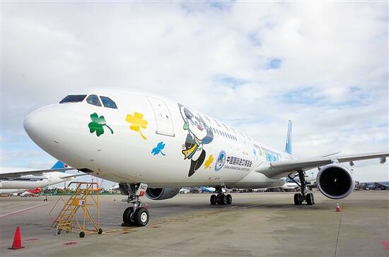 羊城晚报讯 记者唐珩、通讯员南宣报道:今天,最新进博会主题彩绘飞机——南航“进博号”在广州正式亮相,并在当天执行了由广州飞往上海的首航航班。 南航“进博号”彩绘飞机由南航与中国国际进口博览局、国家会展中心(上海)有限责任公司合作推出,选用了南航旗下的远程宽体客机空客A330-300型飞机,采用整机喷漆技术完成喷涂,整个喷涂过程历时15天。 彩绘设计重点凸显了进博会特色,选取吉祥物熊猫“进宝”及其手中所持幸运四叶草为主要元素,其中吉祥物熊猫“进宝”,取自“进博”的谐音,寓意“进口博览会之宝”。熊猫“进宝”脖子上的围巾,黄色的一面代表“陆上丝绸之路”,蓝色的一面代表“海上丝绸之路”,象征着进博会和“一带一路”是中国与世界各国的重要连接点。熊猫“进宝”手持的四叶草象征幸福与幸运,寓意着中国给世界各国人民的美好祝福。 据悉,客舱内部也进行了进博会元素的专属布置。航班平飞后,乘务员化身进博会“蓝天宣传大使”向旅客介绍“进博号”彩绘设计的细节及含义等。 据了解,在这架最新涂装的“进博号”彩绘飞机首航后,南航计划推出“携手南航,飞向美好未来”主题传播策划,开展“进博号”巡回展示活动,借助南航遍布全球的航线网络,全力宣传、展示、服务好进博会,吸引更多的海外友人了解、感受、参与进博会。