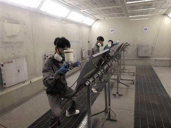 在深圳第二高级技工学校德国费斯托工具中德特色学院,技工学生练习喷漆 |