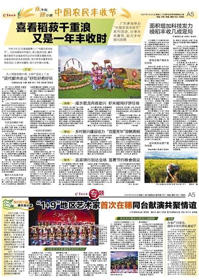 羊城晚报记者 张豪 周聪 罗仕 符畅 柳卓楠 郭思琦 在广州从化,荔枝蜜、流溪娟鱼、艾米等特色农产品走上了“T台SHOW”表演;在广州增城,千亩稻田里无人驾驶收割机正收割水稻, 5G无人