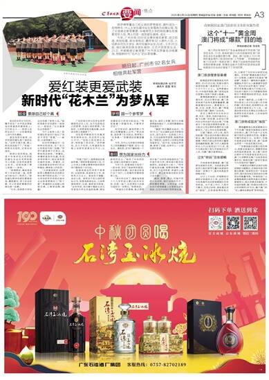 羊城晚报记者 侯梦菲 通讯员 雷蕾 陈美 郑伊婷带着自己和父亲的梦想报名,顺利成为一名特种兵;中山大学应届毕业生张雪尧为说服父母,写了长信表达参军意愿;华南师范大学的欧阳康弘和表哥同年入伍,两人约定一起到部队锻炼、成长…… 今年,广州共有3500名女青年报名参军,经过初选、体检检查、政治审核后,最终有92人顺利入伍,入伍新兵均为大学生,其中应届毕业生29名。9月25日起,她们就将到各自部队报到,正式开启军旅生活。23日,羊城晚报记者探营广州市民兵预备役训练基地,挖掘新时代“花木兰”的从军故事。 蜕变 要跟自己较个真 各式的水杯分为四列,整齐放在广州市民兵预备役训练基地的篮球场上。它们的主人——即将入伍的女兵们——正在篮球场上进行列队操练。 参加役前训练前,20岁的欧阳康弘剪了她的长发,“这样方便打理,晚上洗完很快就干了。”和她一样剪去长发的,还有91名战友。 按照父母的规划,就读于华南师范大学的欧阳康弘毕业后有两条路可以选择:当老师或者考公务员。而她选择了第三条路——参军。 “疫情期间,看到很多军人冲到抗疫一线,我想成为和他们一样的人。”欧阳康弘期待在部队锻炼身体、磨砺意志、学习专业技能,可以在国家需要的时候去做一些事。 “今年,我表哥大学毕业也选择了参军入伍。”她和表哥约定在部队一起努力、一起进步,“比比看谁先立功受奖!” 为什么参军入伍?欧阳康弘和战友们给出了很多不同的“答案”——蜕变,只是答案之一。 18岁的李璠成为一名特种兵的消息,在广东白云学院成为热门话题。“同学们都觉得不可思议,没想到我会参军。”李璠说。李璠家庭条件优渥,在很多同学眼中,她应该有更优越的选择。李璠说,自己就是要改变同学们的这种看法、撕掉身上的标签。 “大家都很惊讶,没想到那么懒散的我会选择这种纪律严明的生活。”广州大学华软软件学院应届毕业生陈莹想跟自己“较个真”,希望部队生活能让她更自律,心智更成熟、稳重! 梦想 圆一个参军梦 广东财经大学大四学生郑伊婷顺利应征入伍,这不仅是她自己的梦想,也是父亲的梦想。“年轻时,父亲想参军未能如愿,这次我也帮父亲圆梦了”。 但在郑伊婷被选为75集团军的特种兵后,年迈的外公担心不已。“他担心我在部队太苦,悄悄流了两次泪。”郑伊婷说,自己不怕苦,只希望两年后能以全新的面貌去见外公,让他看到自己的变化和成长,“争取能拿个荣誉回来,不要两手空空!” 初中军训时,教官的军人气质让杨慧璇难以忘怀。“军训结束,我获得了队列标兵,那种军人‘永争第一’的精神时刻激励着我。” 今年,在中山大学南方学院读大三的杨慧璇终于圆梦,成为一名女兵。离别前,好友们塞给她一个笔记本,扉页上写着:很开心你离梦想越来越近了,后面的篇章就由你来续写了! “最狠”的还属新兵吴丹。今年7月从广东交通职业技术学院毕业后,吴丹成为一名地铁工作人员,为完成参军的梦想,她毅然辞职。“辞职时,应该可以向单位申请保留职位。”吴丹说,但她没有申请,断掉了后路,这样可以一心留在部队发展。 责任 想为国家出份力 “你做了我们一直想做却没做到的事。”得知张雪尧参军入伍,中山大学公共事业管理学院的男同学们跟她说了这句话。 张雪尧身边的同学不是考研、出国深造,就是参加工作,参军的少之又少。更多的不理解,来自父母。参军本不在父母的规划之内,张雪尧是独生女,父母希望她考研、出国,继续读书深造。“去年年底,我无意中看到北京大学退役大学生宋玺的故事,萌生参军的念头。”她用了半年的时间,说服父母同意自己参军。 今年7月,张雪尧给父母写了一封长信,详述了她参军的原因,以及参军的利弊。或许是这封信打动了他们,父母最终同意她参军入伍。 “我今年22岁了,看到电视里十八九岁的战士都已经冲在抗洪、抗疫一线了,总觉得自己应该为国家尽一份责任。”张雪尧说。 “希望自己的青春,能过得更有价值!”18岁的徐荟淼来自广东外语外贸大学,得知被分配至驻港部队,徐荟淼开心极了。“同学们都发朋友圈,夸赞我很棒!”她说,自己不怕苦和累,希望可以通过努力,考上军校留在部队实现人生价值! 蜕变、梦想、责任,怀揣不同的入伍动机,她们也将经历不一样的精彩青春。从明天起,这群女兵们将相继踏上征程前往部队报到,正式开启她们的军旅生涯。